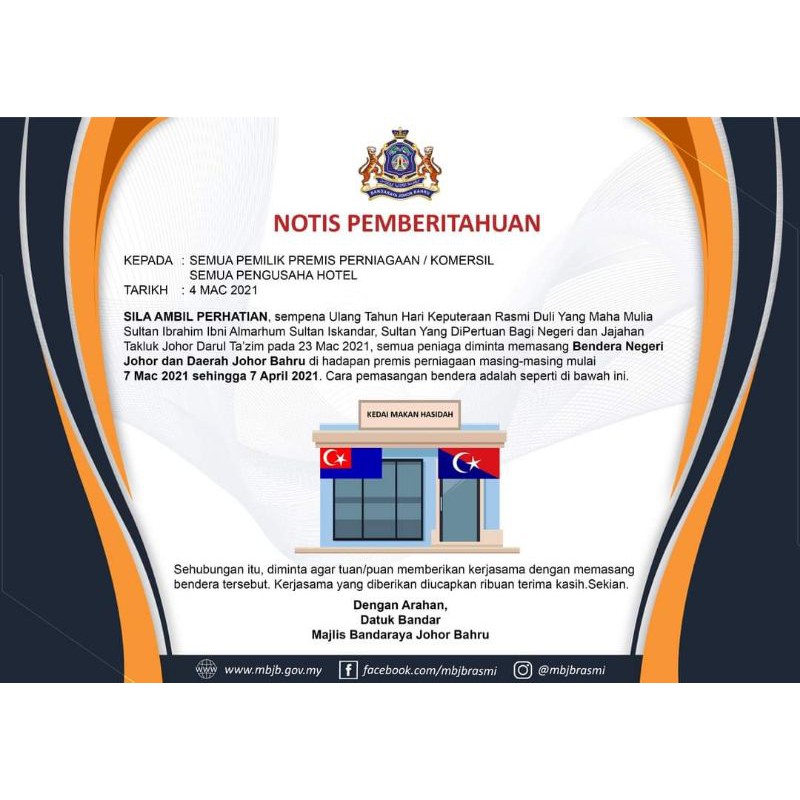 Related : Bendera Daerah Johor Bahru - Sultan johor, sultan ibrahim sultan iskandar menitahkan semua bendera negeri dan daerah dikibarkan separuh tiang hari ini bagi menghormati kemangkatan anakanda sultan brunei, pengiran muda abdul azim sultan hassanal bolkiah..
